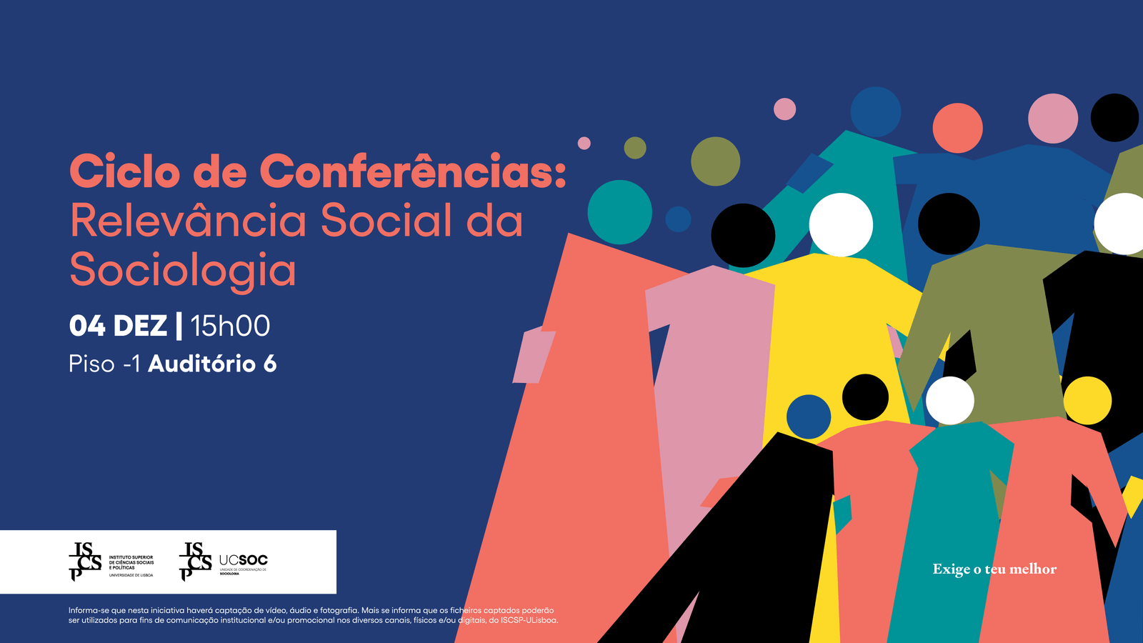 4 dezembro 2025 | 15h00 | Piso -1 Auditório 6 | ISCSP ULisboa O Ciclo de Conferências sobre a Relevância Social da Sociologia do ISCSP-ULisboa regressa neste ano letivo de 2025-2026, proporcionando um espaço de reflexão e partilha de conhecimento sobre temas de elevada pertinência social e científica. Esta iniciativa visa apresentar pesquisas recentes desenvolvidas por sociólogos/as [...]