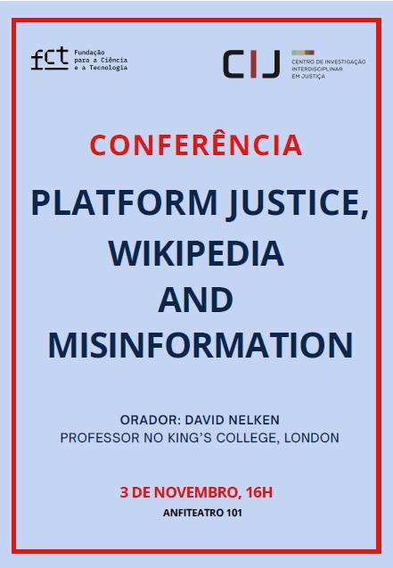 Isabel Rebelo2025-10-28T18:44:15+00:00No dia 3 de novembro, a Faculdade de Direito da Universidade do Porto acolhe a Conferência "Platform Justice, Wikipedia and Misinformation", com o orador David Nelken, Professor no King's College London (Londres, Reino Unido). Poderá visualizar o respetivo Cartaz_3denovembro_16h.pdf Com uma carreira académica internacional, o Professor David Nelken é docente de Direito em Cambridge, [...]
