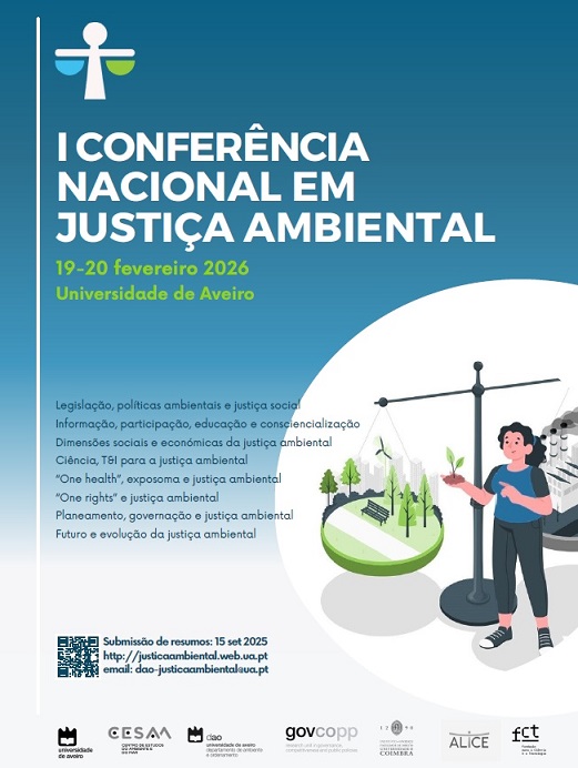 Isabel Rebelo2025-10-07T18:03:30+00:00A Universidade de Aveiro está a organizar a I Conferência Nacional em Justiça Ambiental que se realizará nos dias 19 e 20 de fevereiro de 2026. Submissão de resumos até 15 de outubro de 2025. [nova data] Este será um evento inédito em Portugal que visa promover o debate e a reflexão em torno [...]