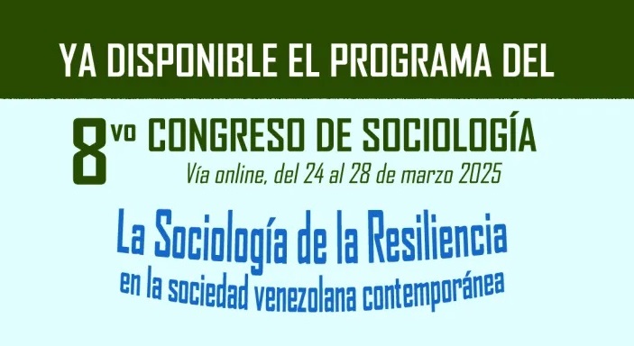 Isabel Rebelo2025-03-26T19:27:33+00:0024-28 de marzo 2025. On-line Organizado por la Asociación Venezolana de Sociología AVS Los invitamos a la inauguración del 8vo Congreso Venezolano de Sociología, el cual se estará inaugurando el 24, de 9 a 11 a.m., hora Venezuela, para abordar el tema de la Resiliencia. Puedes registrarte aquí: https://us02web.zoom.us/meeting/register/FNh77yH5SVyp4QMpGT_HTg#/registration PROGRAMA GENERAL 24 de marzo 2025 [...]