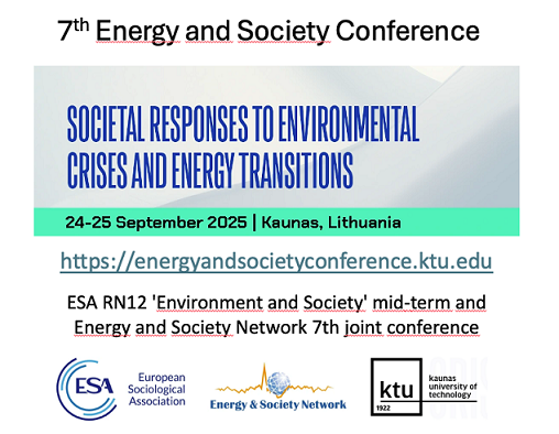 Isabel Rebelo2025-01-22T19:18:38+00:00ESA RN12 'Environment and Society' mid-term and Energy and Society Network 7th joint conference Conference: 24th – 25th September, 2025 Summer school for Early Career Researchers: 22nd – 23rd September, 2025 Venue: Kaunas University of Technology, Kaunas, Lithuania Submission deadline for abstracts and special session proposals extended to 3rd of February! Call for Abstracts [...]