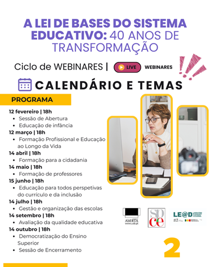 Em 2026 celebram-se os 40 anos da Lei de Bases do Sistema Educativo e para assinalar esta data, a Universidade Aberta (UAb) e a Sociedade Portuguesa de Ciências da Educação (SPCE), com o apoio do LE@D, promovem um ciclo de webinars dedicado à reflexão crítica sobre os impactos, desafios e transformações do sistema educativo português. [...]