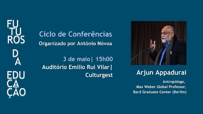 A sessão terá lugar no Auditório Emílio Rui Vilar da Culturgest, dia 3 de maio, às 15h de Lisboa, 11h de Brasília, com animação de António Nóvoa e intervenção presencial de Arjun Appadurai.