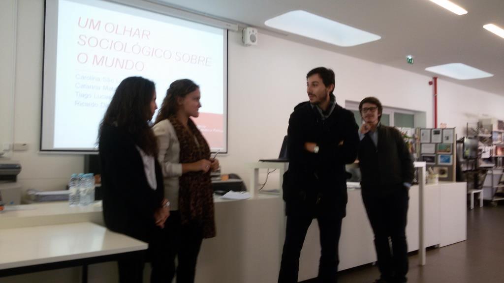 Além da apresentação do guião sobre a “A visão sociológica sobre o mundo”, que possibilitou a participação muito ativa dos alunos do secundário em virtude da troca de ideias e da análise de exemplos, realizou-se também um debate que contou com a intervenção dos alunos sobre alguns aspetos da vida em sociedade, da realidade social e, também, sobre os perfis e empregabilidade dos sociólogos.