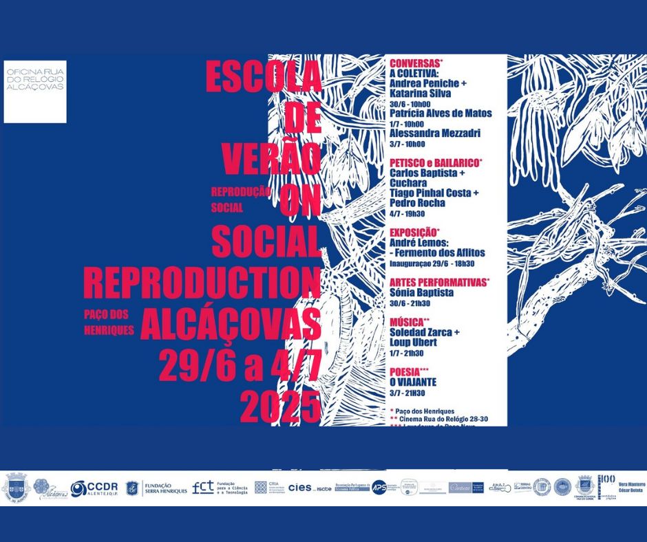 Quisemos começar as nossas práticas com um conjunto de atividades concentradas numa semana, para, nessa mesma semana, irmos colhendo pistas e desenvolvendo reflexões para um plano de atividades a longo prazo. Para iniciar as atividades da Oficina, e porque acreditamos que a interação entre saber empírico, criação artística e conhecimento científico, devem dialogar numa lógica não hierárquica com o objetivo de alimentarmos as nossas práticas de cidadania, concebemos uma ESCOLA DE VERÃO INTERNACIONAL, subordinada ao tema da Reprodução Social. O seu mote é: O Domínio Oculto da Reprodução Social: Comunidade, Ativismo, Arte e Teoria (The Hidden Abode of Social Reproduction: Community, Activism, Art, and Theory).