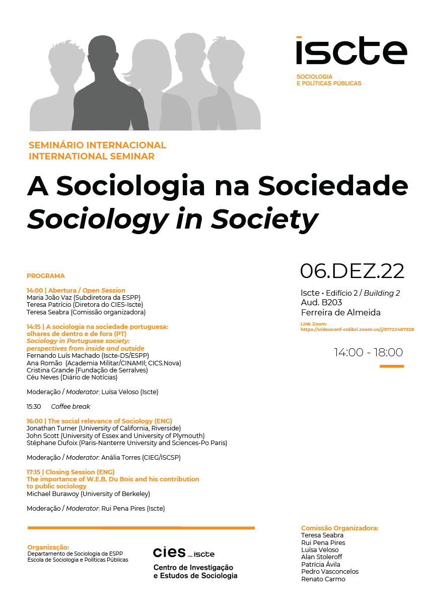 Sociology in Society is the theme of the international seminar promoted by the Sociology department of ESPP/Iscte in partnership with CIES-Iscte.
